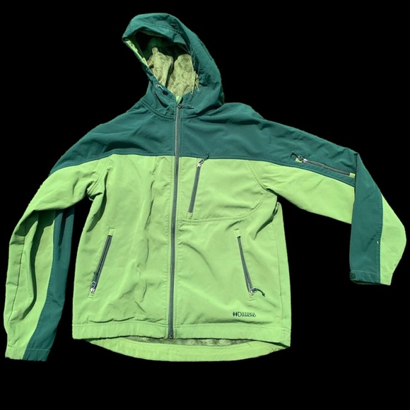 Green jacket in good condition with no flaws. Has four zipped pockets and the material in the inside is furry (picture 3). Size medium.