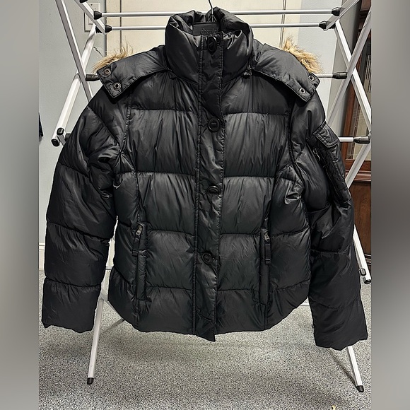 LL Bean black Goose Down Puffer Jacket, women’s size M. used but in very good condition. Waist/hip length. Inside zipper and button closure. Zip off hood. Side zip pockets