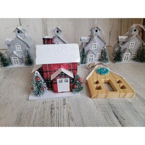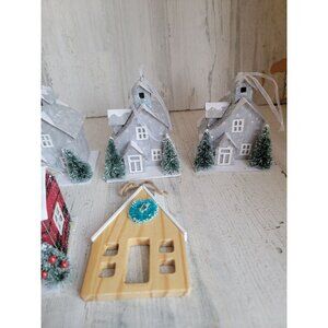 Miniature Christmas Houses With Trees & Wooden House Ornament