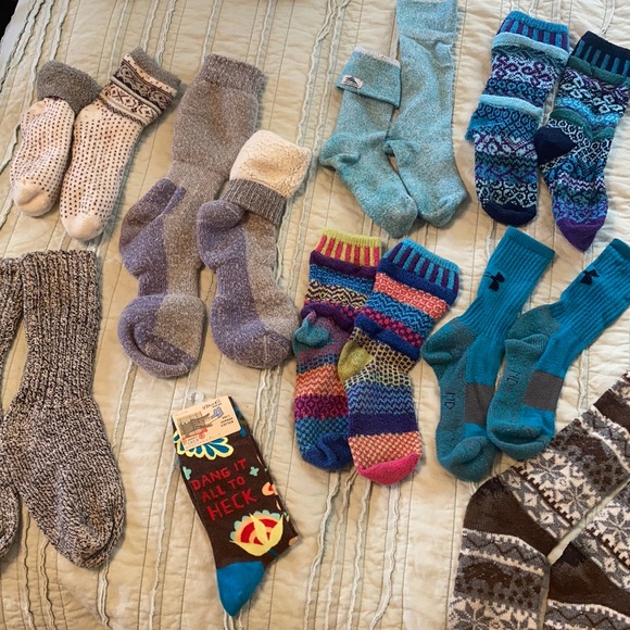 9 pairs of warm socks -Willing to sell as a bundle or individually, just make an offer!