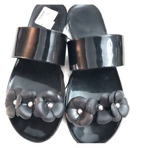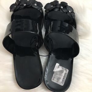 Ladies super cute black jelly sandals with flower detail on the front strap. Excellent condition. Ladies size small=5-6