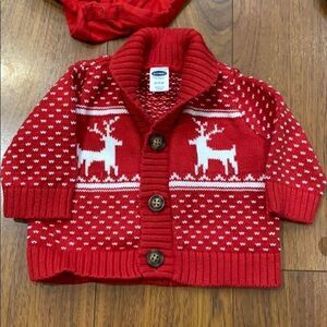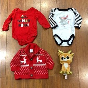 Onesies 3-6 Months. Old Navy Cardigan 0-3 Months. Brand new Glitzy reindeer with tags. Perfect winter pieces for your little one.