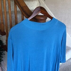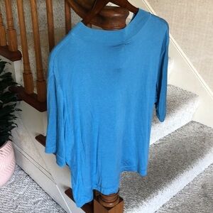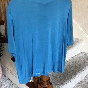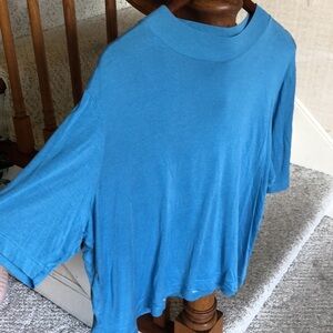Great pre loved condition size xxl pretty blue color quarter sleeves , round high neck, flowy lightweight and breathable perfect for transitional weather