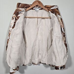 WinterSilks Brown Abstract Art Print Silk Lined Stretch Cotton Blazer Jacket Sz