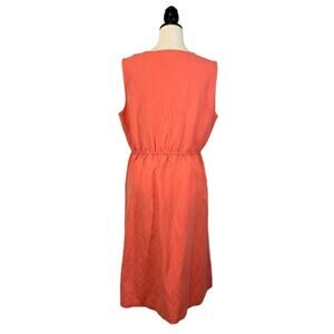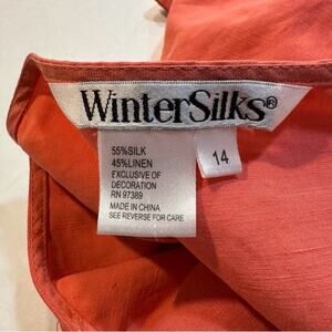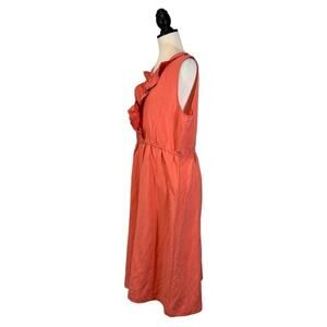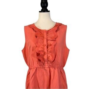 WinterSilks Coral Orange Eyelet Lace Ruffle Front Dress Linen Blend Size 14