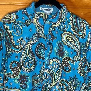 WinterSilks linen Silk Blend Paisley Button down 55% silk 45% linen