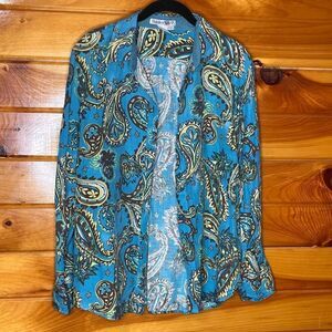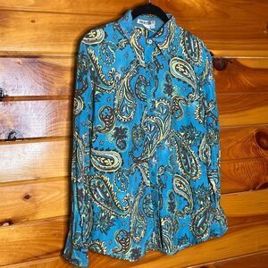 WinterSilks Linen Silk Blend Paisley Button down Large