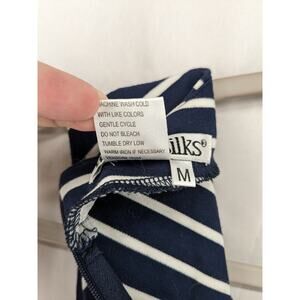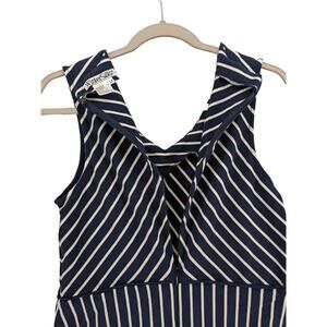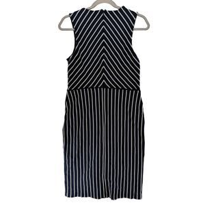 WinterSilks Striped Dress M Navy White Sleeveless V Neck Up Cocktail Knee Length