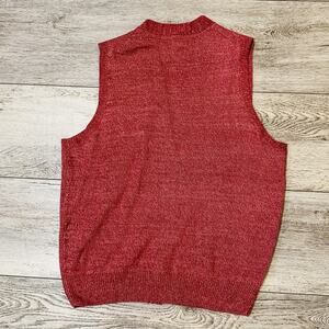 WinterSilks Sweater Vest Mens Medium Red Button Front 100% Silk Sleeveless Knit
