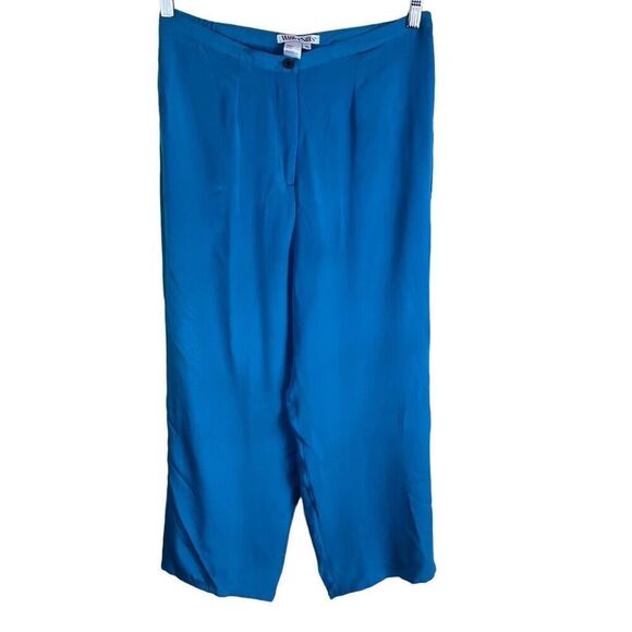 WinterSilks Womens 100% Silk Wide Leg Turquoise Blue Pant Size Petite Large