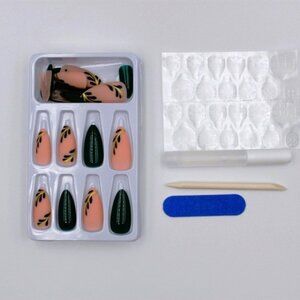 Box Includes 24 fillable pieces, cuticle pusher, nail file, tabs and glue.