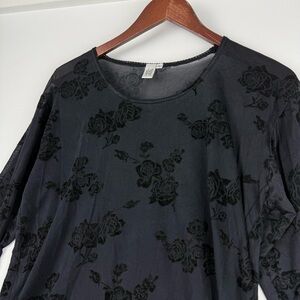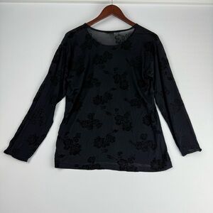 Wintersilks 100% Silk Sheer Velvet Floral Blouse – Black – Size XL