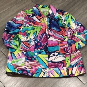 Wintersilks Bright Colored Paint Stroke Fully Lined Snap Front Spring Jacket
