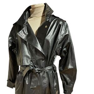 Wippette Ken Sporn Vintage Vinyl Croc Embossed Print Double Breasted Trench Coat