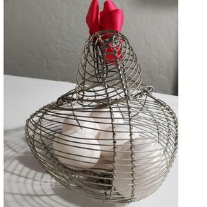 Vintage Metal Wire Egg Basket - Chicken Hen Shaped - Country Farmhouse Decor