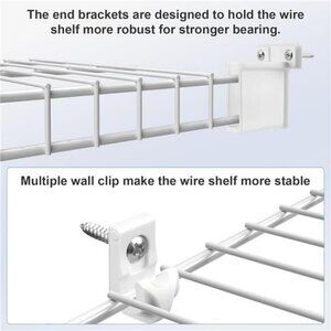 🧿**Complete 8-Pack Set** – Includes 8 wire rack support brackets (17 inches long for each), 16 wire shelf clips and 4 end brackets. Perfect for install 12 inch deep wire racks, ensuring you have everything needed for a secure and robust shelving system. Note: You can use the wire shelf support bracket every 36 inches and install it at each end of the shelf.