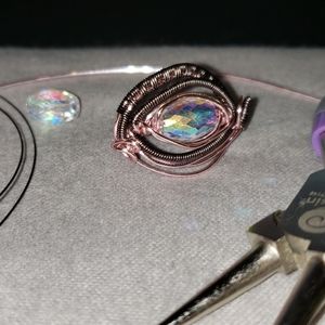 Iridescent Swarovski Crystal focal bead wrapped in Pink & Gunmetal wire. OOAK.
