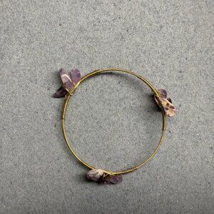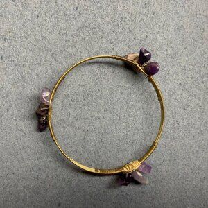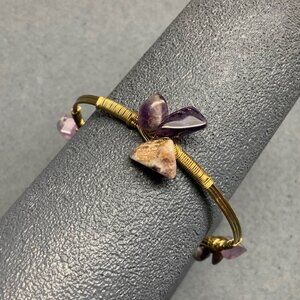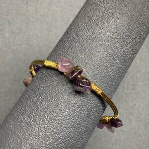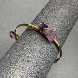 Wire Wrapped Bangle Bracelet 7 In Marbled Purple Stone Clusters Gold Retro Glam