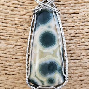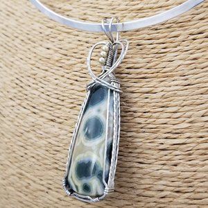 Unisex jewelry sterling jewelry silver jewelry wire wrap pendant ocean jasper jewelry