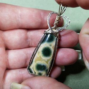 Wire Wrapped Kabamby Ocean Jasper Pendant * Silver wire wrap pendant * wwn15tb
