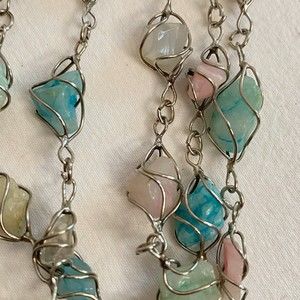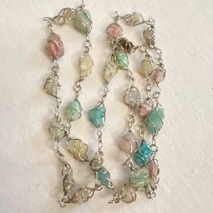 Wire Wrapped Necklace Silver Tone Multicolor Irregular Pastel Stones