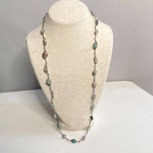 Measurements: chain is continuous, no clasp, length 29", stone width 1/2", weight 0.9 ounces