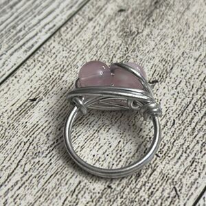 Wire Wrapped Silver Tone and Pink Bead Ring Size 7