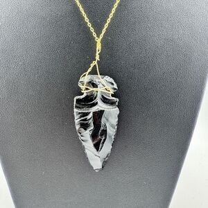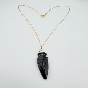 This striking handcrafted obsidian arrowhead necklace blends natural energy with artisan craftsmanship. The sleek black volcanic glass pendant is hand-chipped into an authentic arrowhead shape and wire-wrapped in gold tone for a rugged yet elegant finish. Perfect for those drawn to bohemian, tribal, or spiritual jewelry, this necklace channels grounding energy and warrior strength while maintaining a minimalist, earthy style. Pair it with a linen shirt and denim for boho explorer vibes, or layer it with other pendants for a festival-ready stacked look. A distinctive artisan piece that embodies both history and modern edge.