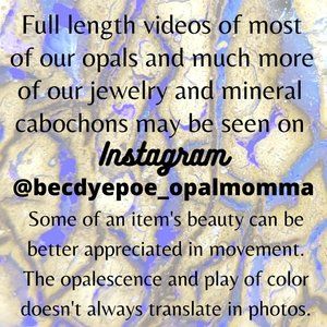 We have many more wonderful Australian Opals, designer cabochons, and handcrafted pieces of jewelry to list. If you are looking for something in particular, please let us know and we will be more than happy to see if we have it in our inventory.