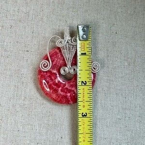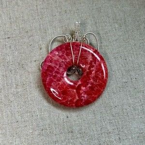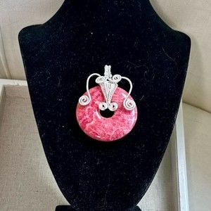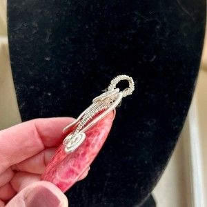 Wire wrapped pink gemstone pendant with silver wire accents. Looks fabulous on a silver necklace for a summer vibe.