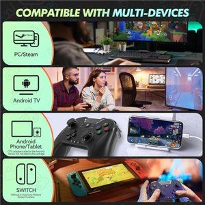 🧿[Widely Compatibility] This wired game controller is compatible with Windows (X-input & D-input), Steam, Epic, Switch (without 6-Axis Gyro function), Laptop,and Android Mobile Phone/Tablet/TV/Box(system version 4.0 or above, and the device must fully support OTG function). Need to purchase an OTG adapter or cable for the Android device with Type-C or Micro-USB port. Not compatible with Xbox 360/ Xbox One/ Mac/ IOS/ PlayStation 4/ Fire TV/ Amazon Fire Stick.