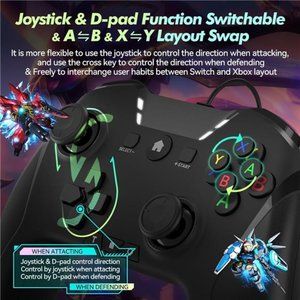 🧿"[Layout Switchable Function] This upgraded PC controller supports D-pad and joystick switchable, which is more flexible to use the joystick to control the direction when attacking and use the cross key to control the direction when defending - Respond quickly to player commands without delay. At the same time this gaming controller supports A-B & X-Y layout swap, which is friendly for different users' habits between Switch and Xbox layout to match personal preference."