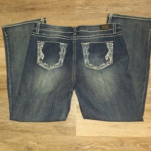 Wired Heart Straight Leg Women’s Jeans Sz 20 Embroidery Stitching Distressed.