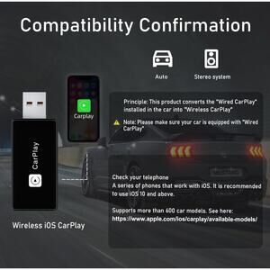 Wired to Wireless CarPlay Adapter. New in sealed box. Plug and play, for use in vehicles with wired Apple CarPlay to convert to wireless. Compatible with Apple iOS 10+. See photos for product specifications. Retails $19.99