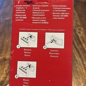 This simple and easy to install kit consists of : 2~ Lighted buttons 1~ Doorbell chime with 2 melody options 1~Transformer