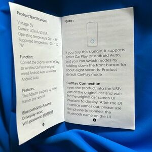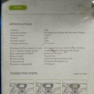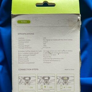 Podofo wired CarPlay to wireless AI box adapter. USB Type-C plug & play CarPlay dongle. Model A3450 allows you to use the CarPlay in your car without cords and connection between your phone and your car stereo. It works with almost all vehicles with OEM wired CarPlay. Features the easily converting of your wired Android Auto to wireless via Bluetooth and WiFi. New dongle, removed from the box for these photos only. Some scuffs and marks on the outer package, all inside is protected.