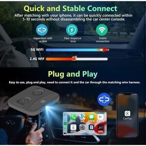Podofo 2024 Carplay Wireless Adapter for Factory Wired CarPlay iPhone Bluetooth Car Adapter Wired to Wireless Car Play Dongle Original Wired USB Plug & Play Support Online Update
