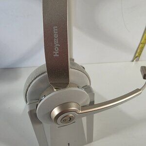 Hoyzzem hands-free wireless headset equipped with Qualcomm Bluetooth V5.0 ensuring seamless, stable connections with unparalleled clarity. One of the standout features of this headset is its remarkable Bluetooth range of up to 33 feet. This expansive coverage grants users the freedom to move around while staying connected. One of the standout features of this headset is its remarkable Bluetooth range of up to 33 feet. Offering up to 26 hours of continuous talk time on a single charge and 160 hours of standby time. This model comes with a plug-and-play charging dock with USB dongle, offering users the convenience of wireless charging with a Type-C charging cable (not included). The color is champagne & white/beige.