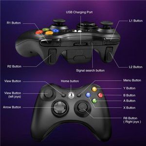🧿【Wide Compatibility】wireless controller perfectly compatible with Microsoft Xbox 360/Slim, PC Windows 11/10/8/7. (Note: Have to use the wireless receiver to pair the controller with the Xbox 360 and PC console. A receiver cannot be used for multiple xbox 360 controllers. If you want to connect 4 controllers to the Xbox, you need to ensure that there are 4 usb ports on the Xbox and plug 4 receivers into the Xbox.)