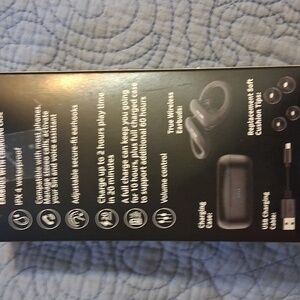 true wireless earbuds with charging case, IPX4 waterproof, 70H, volume contol, earhooks, all in box, brand new