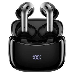 Long Play Time: 8H-10H Long-lasting Battery Life & Low Battery Voice Notification and a 550 mAh charging box that can charge the headset 5-6 times, display Battery Capacity of Earphones
