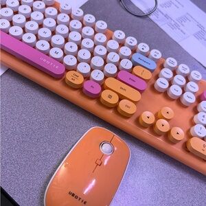 Keyboard used for one semester in a classroom. It will need a new USB adapter that goes in the back of the mouse, which will connect the keyboard to the computer you are using. Originally $50.