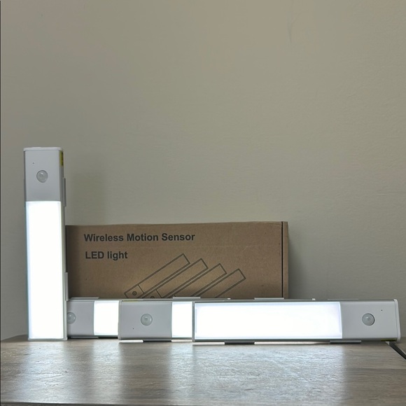 Bright LED lights with motion sensor. Easy to install. Perfect for closets and cabinets. 4 pack