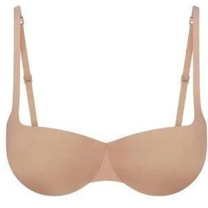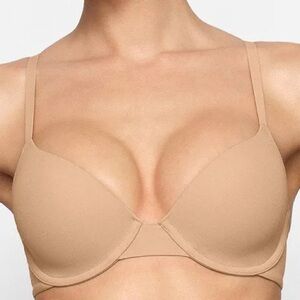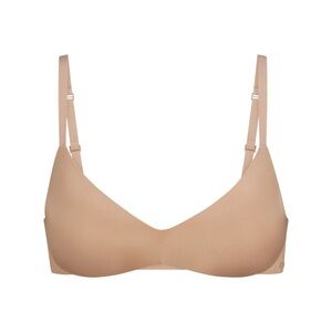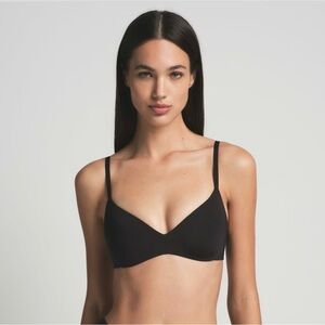 A flattering plunge style with ultra-soft push-up foam pads that offer the perfect amount of lift and support. This wireless style has lightly lined, cloud-like foam pads for ultimate comfort and wide microfiber wings for a smooth and seamless look. Features fully adjustable straps, a tonal 3D SKIMS logo on the front, and a hook and eye back closure. Fits true to your SKIMS bra size