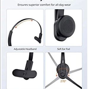 Headset with Microphone, Wireless Cell Phone Headset Noise Cancelling Mic, On Ear Bluetooth Headphones