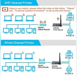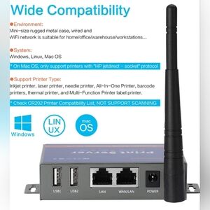 【SUPER CONVENIENT】: This wireless printer adapter is a compact design with a metal shell and a mounting hole, convenient to install on a desktop/wall. This print server doesn't require a wired connection to a computer/router, there’s no need to put your printer next to them, just make a wired or WiFi connection between the print server and your router. It's ideal for home or business applications, and government or educational institutions that require shared printing capabilities.