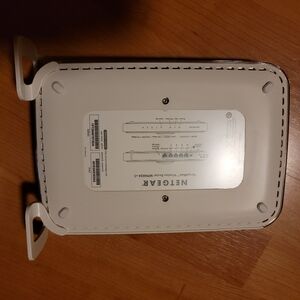 Netgear wireless router, 4 port with stand, power cord and cable. Can be used laying down or standing up. WPN 824, 802.11, Super G