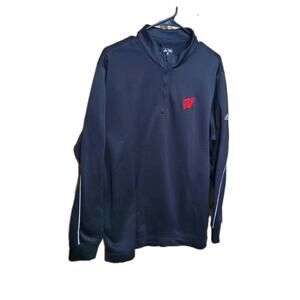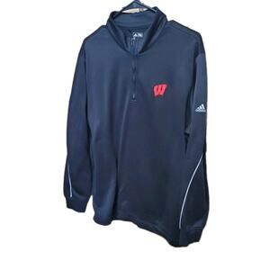 The product is a Wisconsin Badgers Adidas Climalite 1/4 Zip Pullover Fleece in Men's XL size. This sweatshirt is designed for fans of the football team, featuring the team's colors and logo. With the Adidas brand known for quality and athletic performance, this pullover fleece is a comfortable and stylish way for fans to show their support for the Wisconsin Badgers.