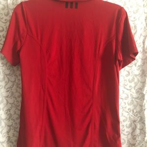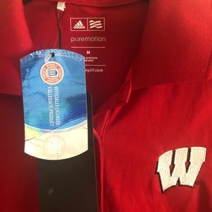 Red Adidas golf polo- NWT. Red with white Wisconsin logo on chest