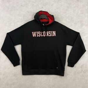 Wisconsin Badgers Hoodie Mens Large Black Sweatshirt Team Spellout Sweater